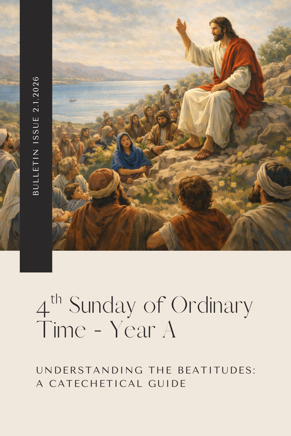 This week’s bulletin reflects on the Beatitudes — the heart of Jesus’ teaching and a guide to living a life shaped by humility, mercy, and trust in God.